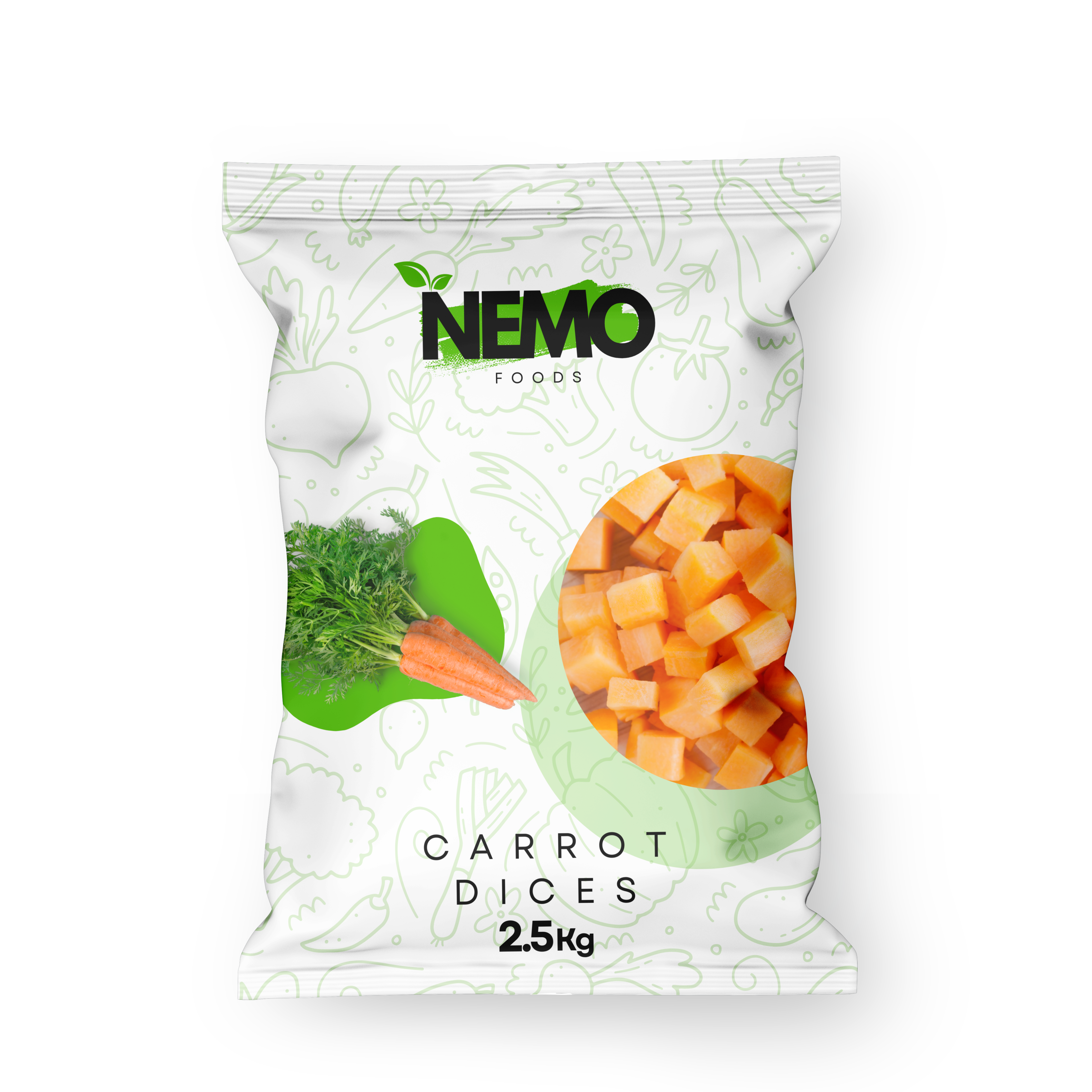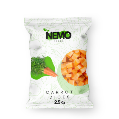 Bright orange carrot dices frozen to keep their natural sweetness and crunch. Offered in 2.5kg packs, perfect for soups and stir-fries.