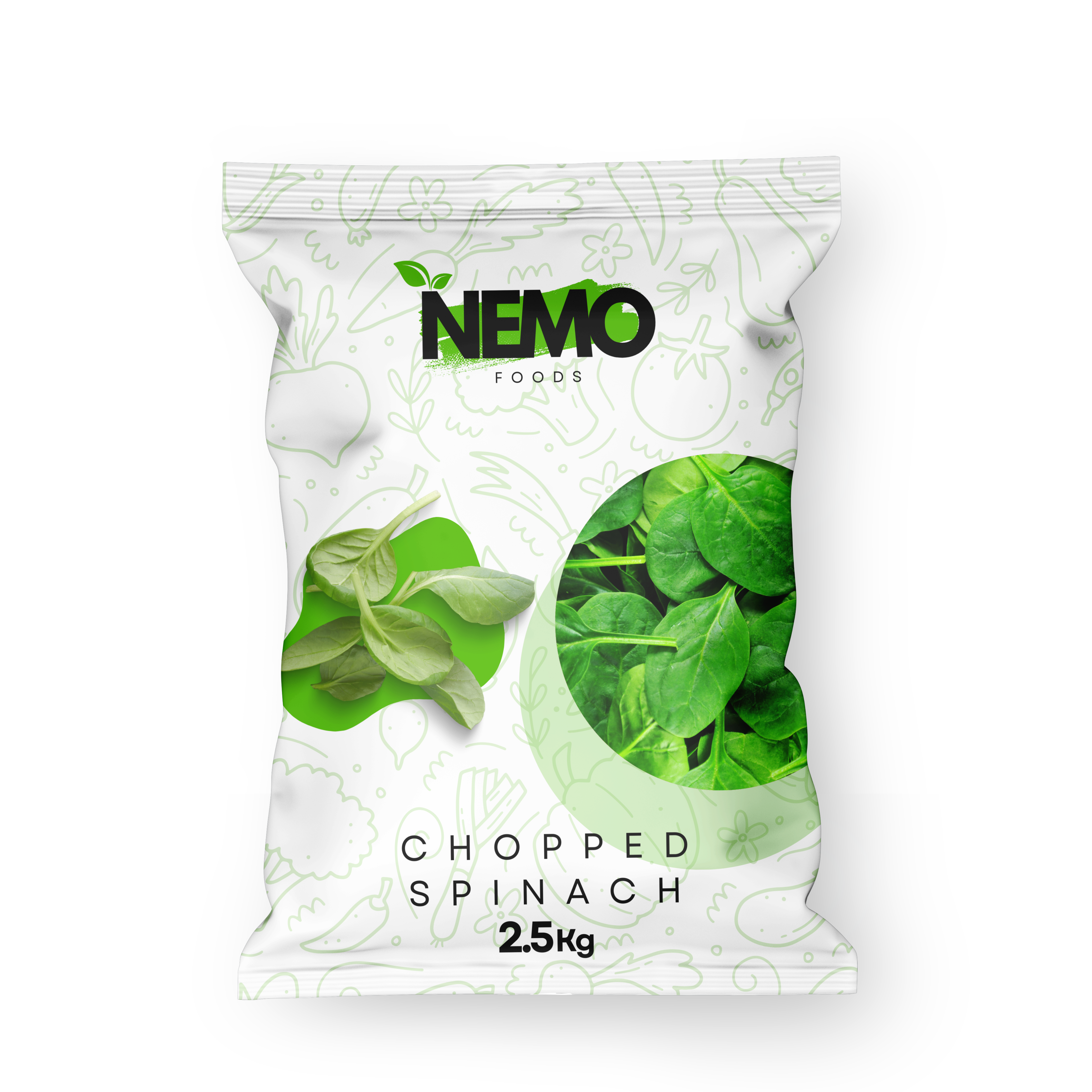 Freshly chopped spinach, frozen to preserve its vibrant green color and mild flavor. Available in 2.5kg packs, ideal for soups, stews, and pies.