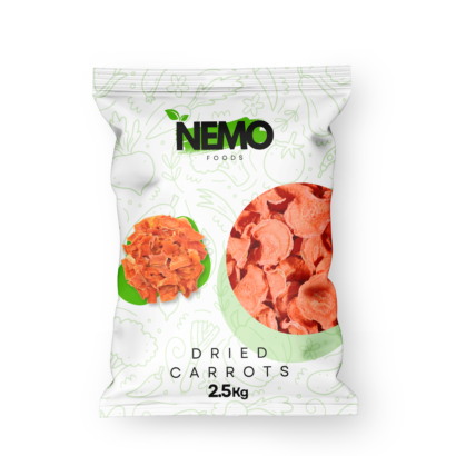 Vibrant and sweet dried carrot bits in a 2.5kg bulk pack—ready for soups, health snacks, and mixes.