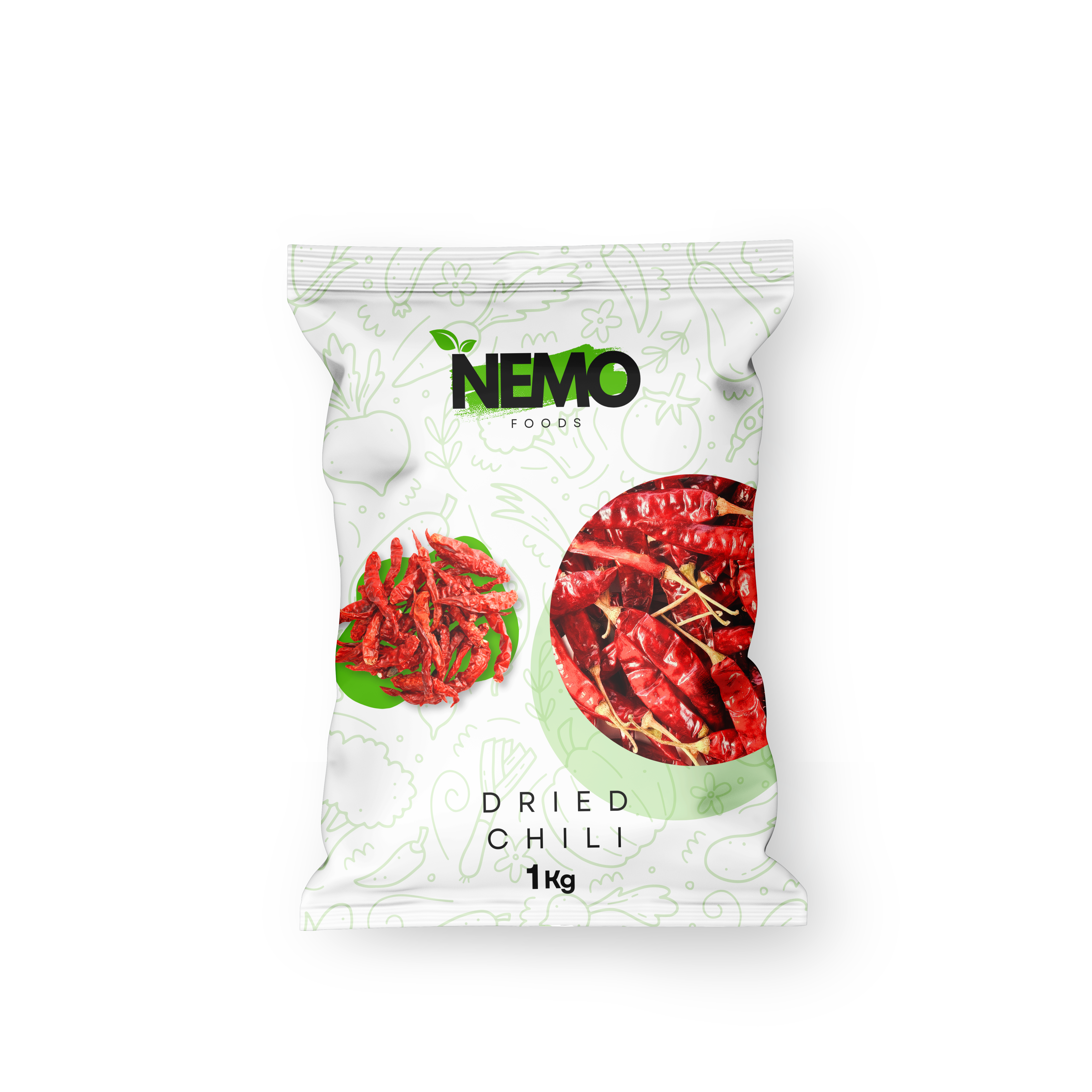 Hot and vibrant dried chilies in a 1kg pack—perfect for spicing up oils, marinades, or dry rubs.