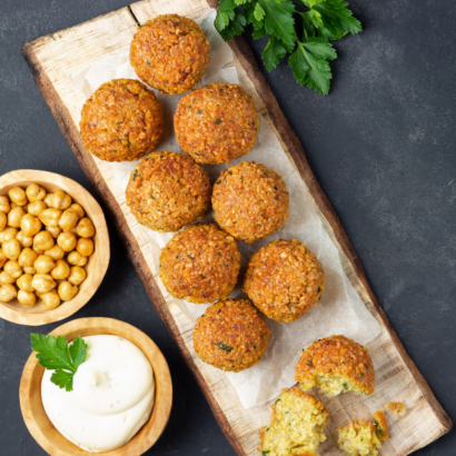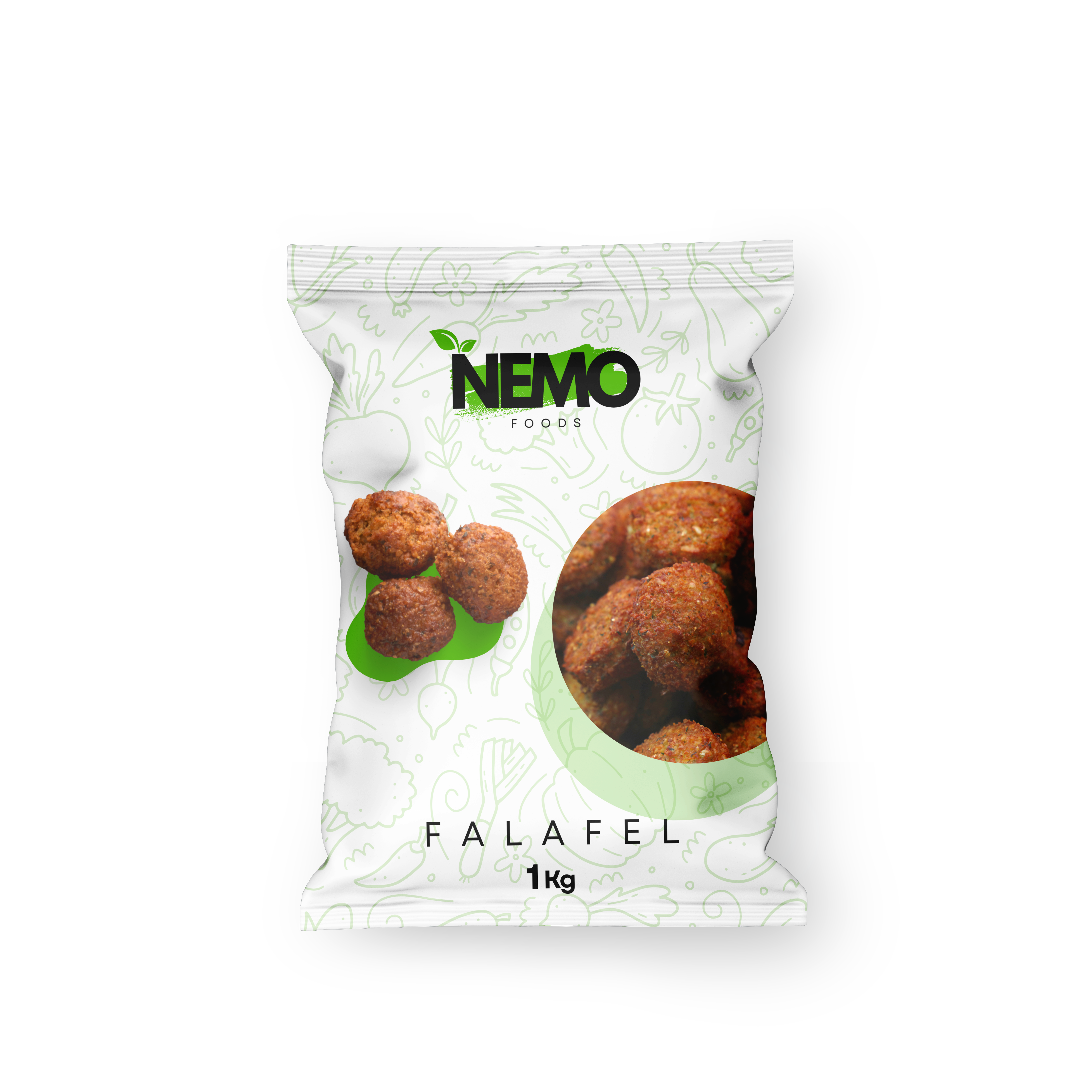 Ready-to-cook falafel balls frozen to keep their authentic taste and texture. Offered in 1kg packs, perfect for quick meals and snacks.