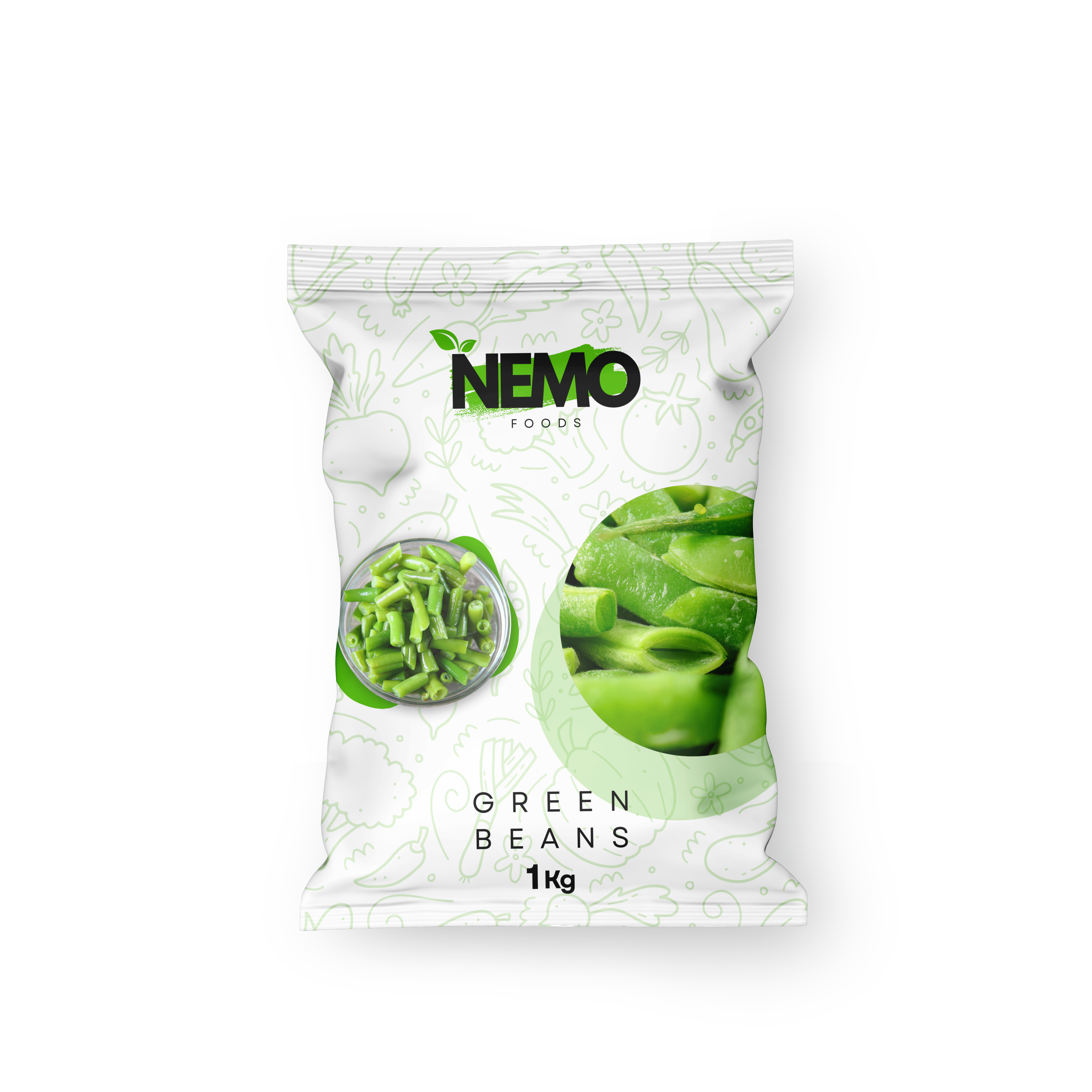 Crisp green beans frozen at peak freshness, preserving their natural crunch and flavor. Available in 1kg packs, versatile for many dishes.
