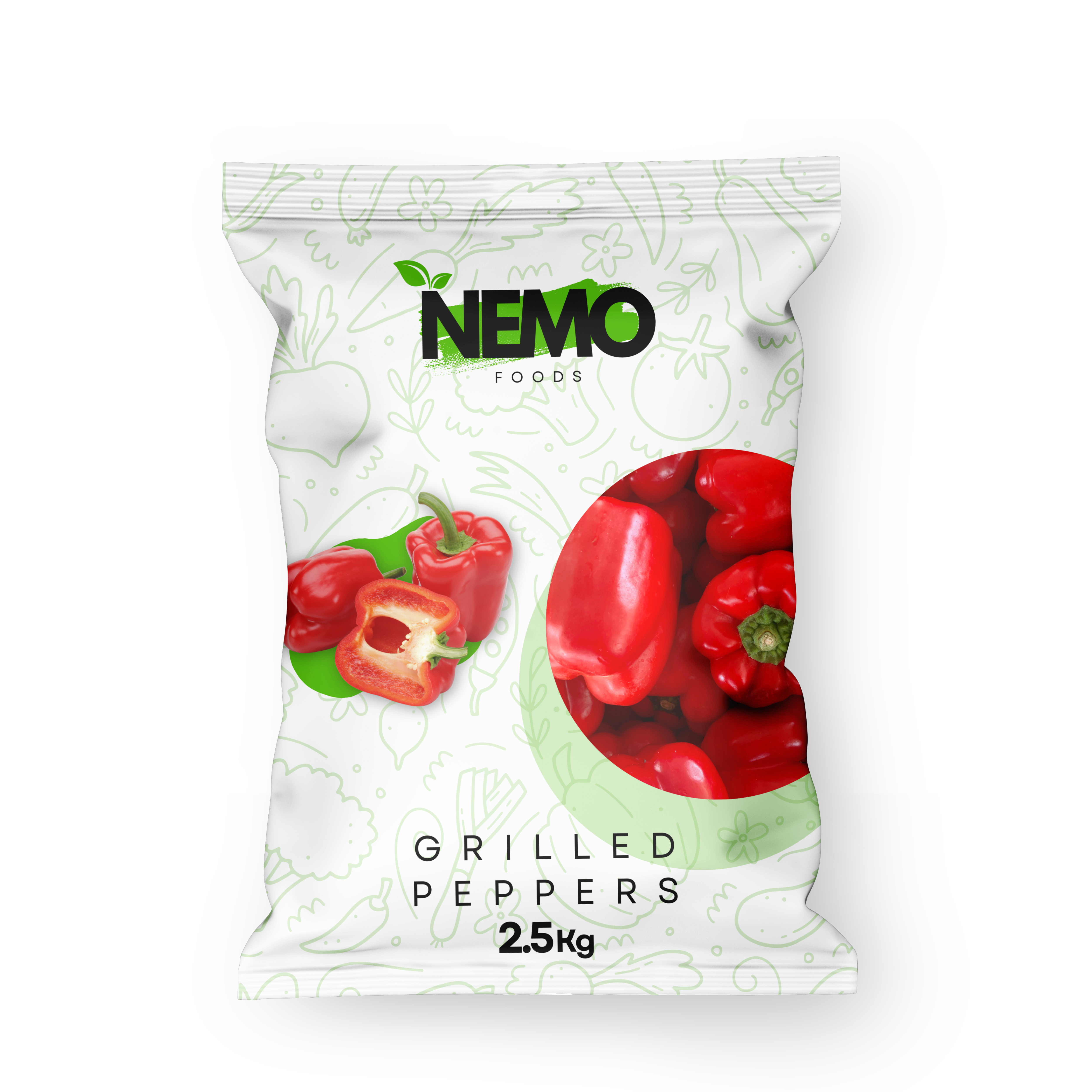 Perfectly grilled and frozen peppers that keep their smoky taste and tender texture. Packaged in 2.5kg packs, great for salads, dips, and sandwiches.